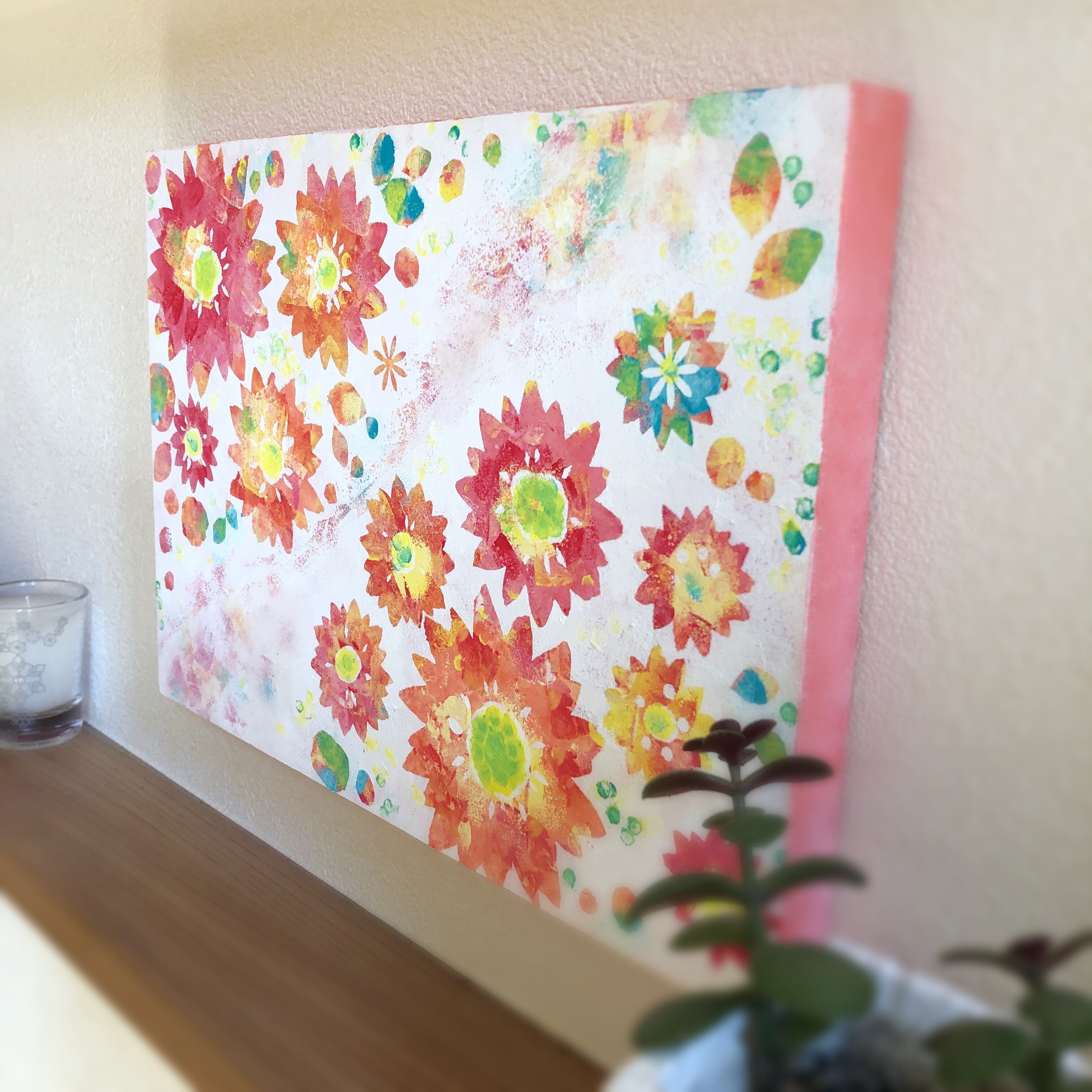 春をイメージしたピンクガーベラのインテリア絵画です。